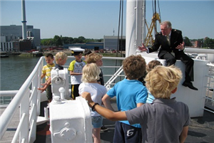 Bezoek de boeg, neem een kijkje in het stuurhuis of leer met Kapitein Kaap van alles over het schip!