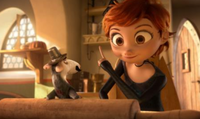 Tot ze bij een dorp komen zonder ratten … maar mét een bijdehande burgemeestersdochter Olivia – ingesproken door Georgina Verbaan. Die haarfijn hun plannen door heeft.