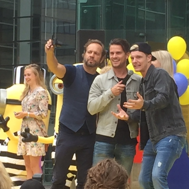 We staan aan de gele loper en willen best de artiesten interviewen, maar dat valt nog niet mee. We staan dan wel vooraan, zien Rosanne en Mylene en Sarah en Julia en kunnen de Minions aanraken. Maar naast ons staat iemand van TV (Hart van Nederland) met een grote camera en die blijven lang interviewen. Enzo Knol krijgen we dan ook niet te pakken en die wilden we graag interviewen.