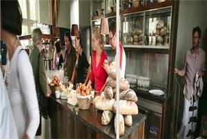 Aan de toonbank zijn alle hartige en zoete taarten, scones, brioches, allerlei soorten brood en onze zelfgemaakte jam die zij in de lunchroom gebruiken, te koop.