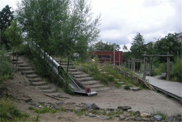 Je vindt er een klimrots, waterfonteinen, een sportveld en meer. Je kunt hier naar hartenlust klimmen en klauteren!