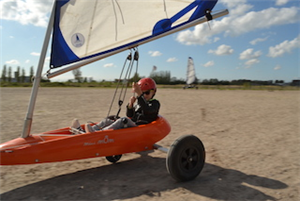 Bij Wind ’n Wheels kun je op een leuke en veilige manier landzeilen (blokarten of blowkarten)….je weet wel, met van die karretjes die je ook op het strand ziet! Kinderen vanaf 8 jaar kunnen zelfstandig in een eigen kar zeilen, een jonger zusje of broertje kan met de ouder mee in een tandem.
