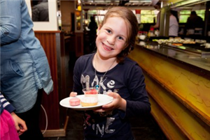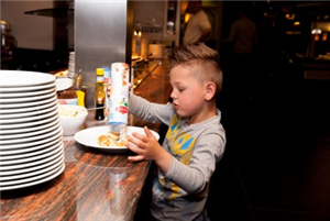 Voor de kids is er genoeg, natuurlijk ontbreken de frietjes, kroketten en chocoladefontein niet. Bovendien kunnen ze zich vermaken in de speciale speelruimte met spelcomputers en een theater. Deze is wel bovenin het restaurant, met kleintjes moet je dus mee naar boven.