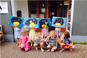 Je kunt kiezen uit verschillende thema’s van Pop Art tot plofkip! Je kunt zelfs in de voetsporen lopen van een bekende schilder….