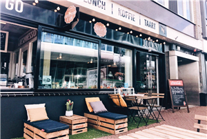 Het café is niet heel groot, dus voor kinderwagens niet ideaal.