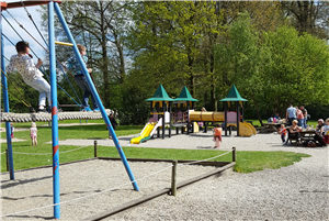 Net over de grens bij Meersel Dreef ‘Bij de Paters’ ligt deze grote speeltuin. Je kunt er klimmen, glijden, voetballen en heerlijk schommelen op de familieschommel!