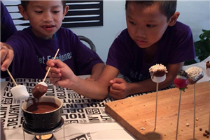 Wat een leuk feestje… ontdek verschillende smaken, leer meer over chocolade en maak je eigen fruitspies van chocolade!