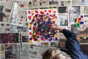 Docente Saskia van Studio Kunst biedt een 10-weekse workshop om de wereld van de kunst te ontdekken.