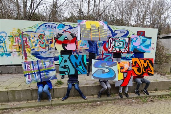 Maak samen met een graffiti kunstenaar van We Are Cats je eigen canvas met kindvriendelijke spuitbussen!