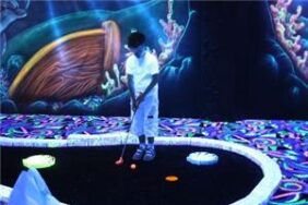 Speel in deze spannende blacklight midgetgolf parcours! De holes, de ballen, alles geeft licht!