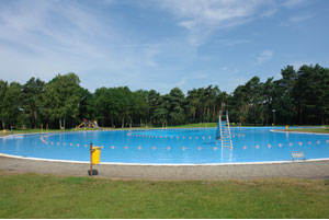Het buitenbad ligt aan een groene natuurlijke omgeving en er is een grote ligweide met speeltoestellen voor kleine kinderen. Je kids hoeven zich niet te vervelen als ze niet in het water liggen! Er is schoon sanitair, wat wij heel plezierig vinden en omkleedhokjes. Bij de buitendouches kun je heerlijk afspoelen na een duik in het zwembad!