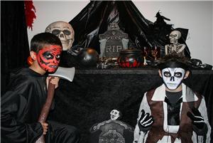 Verkleed je als zombie, skelet, heks, vampier, dracula, bloederige bruidje, noem maar op. Daarna word je geschminkt, uiteraard bijpassend bij jouw outfit. Tijdens en na het schminken mag je lekker knutselen en leuke griezelspelletjes doen. Het feestje wordt afgesloten met een fotoshoot!