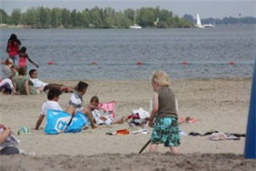 Het Harderstrand aan het Veluwemeer in Dronten met op warme dagen reddingsbrigade