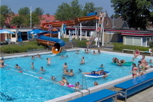Heerlijk plonzen van de duikplanken, roetsjen van de 43 meter lange waterglijbaan, spetteren in het familiebad of pootjebaden met de peuters. Zonnebaden op de zonneweide of op het riante terras een ijsje, snoep en snacks eten, wat een heerlijke dag voor het hele gezin! Geniet! Kijk voor meer informatie op de website via de roze button.