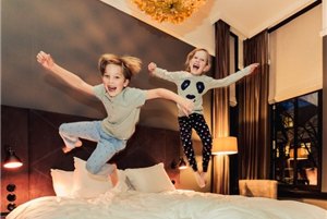 Dit voormalig postkantoor is nu een hotel. De sfeer van de postbode hangt overal. Super leuk om dit met je kind te ontdekken waar je dit dan ziet. Voor kids is er een apart menu, vernoemd naar Pieter Post! Hoe cool is dat. De familiekamer is heerlijk, er kan zo een babybedje bijgezet worden en er is een babyphone aanwezig! Dus heit en mem kunnen als de kindjes op bed liggen, samen beneden lekker eten, want de babyphone reikt ver genoeg naar de familiekamer. Wat fijn..