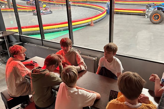 Het is inmiddels 16.30u en we mogen ons alweer melden in het ‘Kartcafé’ voor de volgende activiteit: KARTEN Deze link opent in een nieuwe tab. Maar eerst drinken we even wat!