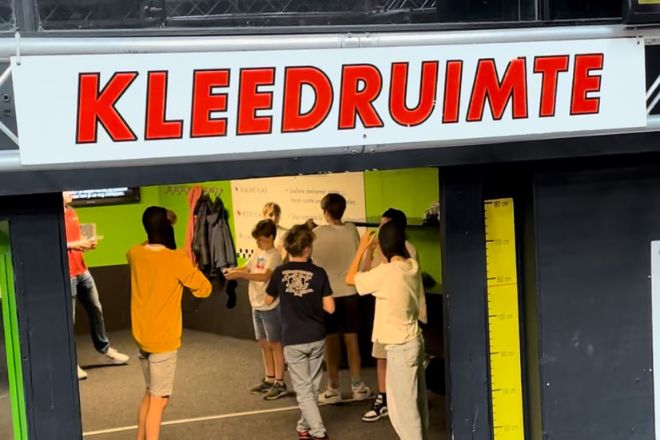 In de kleedruimte krijgen ze uitleg over de baan, de kart en de betekenissen van de verschillende kleuren vlaggen. zo weten ze precies wat ze moeten doen en hoe bijvoorbeeld de laatste ronde wordt aangekondigd.
