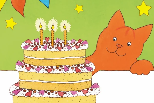 Dikkie Dik is jarig en op tafel staat een grote taart. Hij neemt een hapje. Wat is dat lekker! Hij neemt nog een hap en nog één en voor Dikkie Dik het weet, is de taart op. Hij moet op zoek naar eitjes, melk en appels voor een nieuwe appeltaart, maar ondeugend als Dikkie is, gaat er van alles mis. Kan zijn verjaardagsfeestje wel doorgaan?