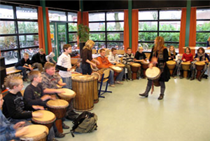 Leer tijdens een cursus spelen op de djembé: een vrolijk, Afrikaans percussie instrument!