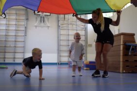 Ouder-kind lessen in de gymzaal, onder begeleiding van professionals