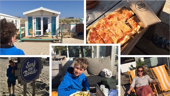 We nemen even pauze bij Surf en Beach Deze link opent in een nieuwe tab op het strand van Katwijk. Echt genieten op het mooie terras, lekkere nacho’s, pizza en een koel drankje. Als dat geen vakantie is!