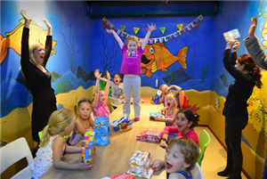 Het gebruik van de feestkamer is altijd inclusief in het arrangement. In de feestkamer kan je limonade drinken, wat lekkers eten (afhankelijk van je gekozen arrangement) en je cadeautjes uitpakken natuurlijk!