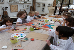 Maakt iets moois met alle materialen die je kunt verzinnen; houtjes, touwtjes, stenen, scherven, stoffen, knikkers, kralen, noem maar op! Het is allemaal aanwezig in het atelier.