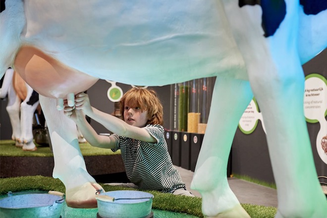 Grote en kleine kaasfans doen de Gouda Cheese Experience Deze link opent in een nieuwe tab! In een interactieve reis door een goudgele wereld kun je virtueel melken, ga je aan de slag met ontdekwanden en leer je het spel van handjeklap. Natuurlijk mag een mini kaasproeverij van de enige echte Gouda kaas niet ontbreken.