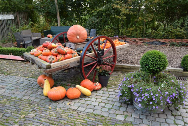 Tijdens het pompoenseizoen tussen begin augustus en eind oktober is de pompoentuin geopend. Door de pijlen te volgen kom je langs de pompoenvelden, de opkweekkas, de bloemen- en kruidentuin en langs de artisjokken.  Ook kan je genieten van een kopje koffie of thee op het terras.