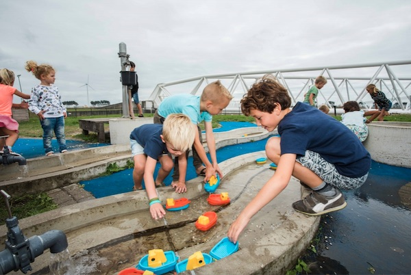Er is een heleboel te zien en te doen, zoals een grote heuvel beklimmen en een waterspeelplaats waar je zelf met pompen en zandzakken aan de slag kunt en dijken kunt bouwen. Kids raken er niet uitgespeeld! Binnen kun je het zelf laten stormen of gieten van de regen op het watervertelplein.
