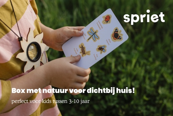 Een superleuke en makkelijke manier voor je kind om de natuur te ontdekken is de Spriet box! Een doos vol natuuractiviteiten zoals natuurbingo, bloemenkunst maken en zelf groenten kweken.