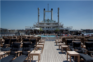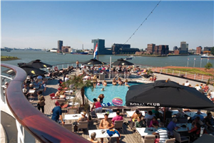 Met een werelds uitzicht op de Maas en de skyline van de dynamische stad kun je hier heerlijk eten en drinken. Er zijn diverse restaurants en bars: de Club Room, het Lido, het Lido terras, de Captains Lounge, de Ocean Bar. Met name het Lido Terras is bij mooi weer met kids een aanrader! Hier kan je onder het genot van bijvoorbeeld een lekkere cocktail pootje baden in het bewaard gebleven zwembad (nu 40 cm diep). De cocktails worden geserveerd vanuit de schitterende teakhouten Cocktailbar in de hoek van het terras. Ontspan en geniet van het prachtige uitzicht over de Nieuwe Maas en de skyline van Rotterdam!