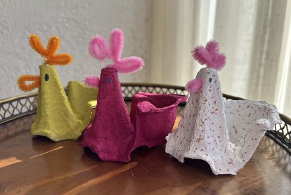 Een echt kip-ei verhaal. In deze vrolijke kipjes gemaakt van eierdoos presenteer je heel feestelijk een gekookt eitje. Knip een hoek van een eierdoos, beschilder hem en maak van karton of chenille draad een snavel en een kuif. Je kunt van iedere eierdoos 2 kipjes maken, ook wel wat meer maar dan moet je wat creatiever knippen. Tok!