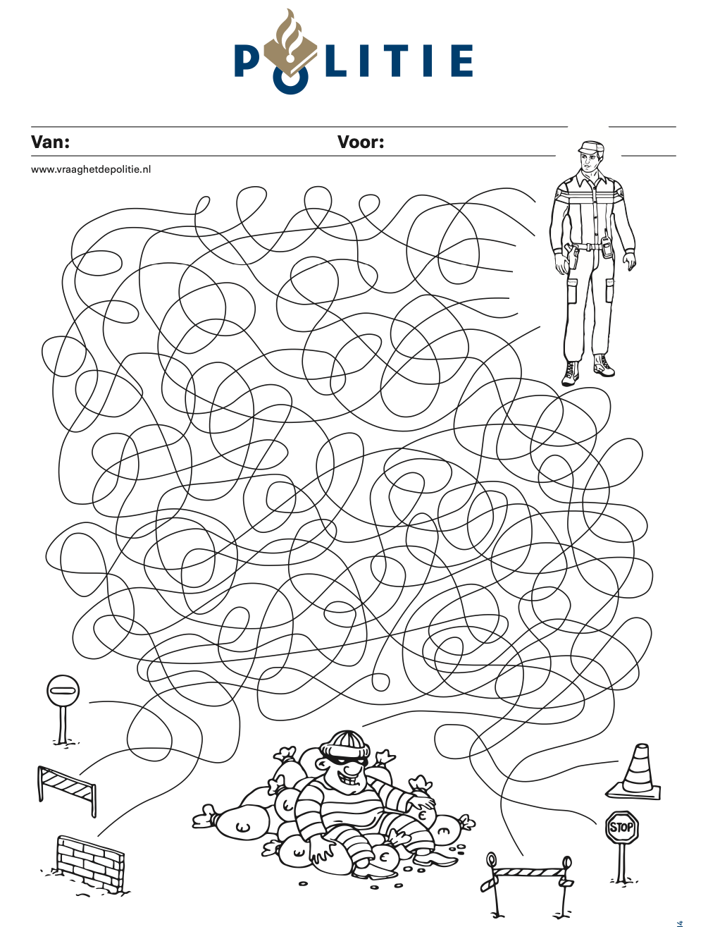 Deze en nog andere leuke knutsel- en kleurplaten vind je op de website van Vraag het de Politie!