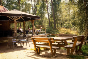Een sfeervol plekje voor een heerlijk kopje koffie midden in het bos op Landgoed Lutterzand in De Lutte!