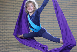 Bij TumbleTime kan je op luchtacrobatiek: hangen, klimmen, duikelen en meer met doeken en hoepels! 7+