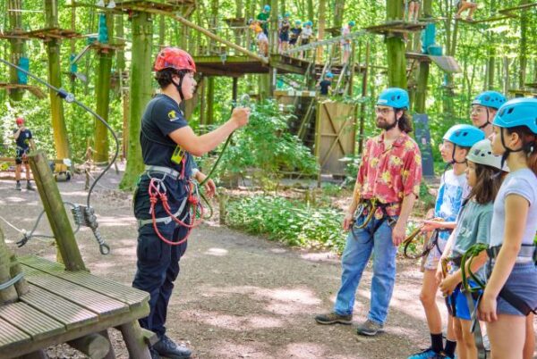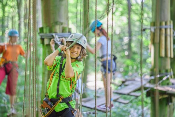 In het klimbos beweeg je je via touwen, ladders, bruggen en tokkelbanen door de bomen. Het klimpark heeft 9 parcoursen, van 2,5 tot 15 meter hoogte. De instructeurs houden toezicht vanaf de grond en helpen wanneer dat nodig is.